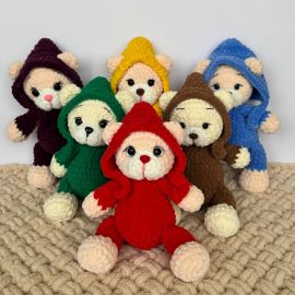 ԱվելացնելԱյս հմայիչ փափուկ արջուկները գլխարկով ոչ միայն խաղալիքներ են, այլ նաև ջերմություն ու սեր փոխանցող ընկերներ։ Ձեռքով հյուսված են հիպոալերգիկ վելյուրյան թելից՝ դիպչելու համար շատ հաճելի։ Գունավոր ու արտահայտիչ տեսքով, հարմար են որպես նվեր՝ ծննդյան, երեխայի ծննդյան կամ պարզապես սիրով՝ առանց առիթի։