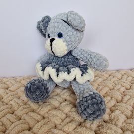 Յուրաքանչյուր արջ ստեղծվում է յուրաքանչյուր մանրուքին ուշադրությամբ, ուստի յուրաքանչյուր խաղալիք յուրահատուկ է և անկրկնելի: Կապույտ արջը կապտամոխրագույն զգեստով պարզապես խաղալիք չէ, այլ իսկական փոքրիկ ձեռագործ աշխատանք, որը ջերմություն և ուրախություն կպարգևի իր տերերին: