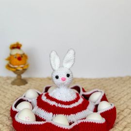 Զատկի «ձվաման» այս ձեռագործ նապաստակը կատարյալ աքսեսուար է Սուրբ Զատկի սեղանի համար: Այս հմայիչ կերպարը ոչ միայն տոնական մթնոլորտ կստեղծի, այլև հուսալի «ձվաման» կդառնա ձեր Սուրբ Զատկի ձվերի համար։ Ձեռագործ նապաստակը պատրաստված է կարմիր և սպիտակ գույներով,