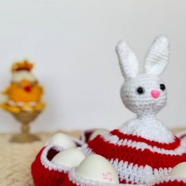 ԱվելացնելԶատկի «ձվաման» այս ձեռագործ նապաստակը կատարյալ աքսեսուար է Սուրբ Զատկի սեղանի համար: Այս հմայիչ կերպարը ոչ միայն տոնական մթնոլորտ կստեղծի, այլև հուսալի «ձվաման» կդառնա ձեր Սուրբ Զատկի ձվերի համար։ Ձեռագործ նապաստակը պատրաստված է կարմիր և սպիտակ գույներով, ինչը նրան տալիս է առանձնահատուկ ջերմություն և հարմարավետություն։ Նրա փափուկ ականջները, գեղեցիկ դեմքը և կոկիկ կազմվածքը նրան իսկական զարդարանք կդարձնեն ձեր տոնական սեղանի վրա: Այս նապաստակը ոչ միայն ֆունկցիոնալ է, այլև Զատկի հրաշալի նվեր կլինի ձեր ընտանիքի և ընկերների համար։ Ավելացրե՛ք այս ոճային և գործնական աքսեսուարը ձեր Զատկի ավանդույթին: