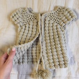 Մանկական այս հարմարավետ և ոճային ձեռագործ ժակետը գերազանց ընտրություն է ցուրտ օրերի համար: Փափուկ բնական մանվածքը նրբորեն շրջապատում է ձեր երեխայի նուրբ մաշկը՝ ապահովելով ջերմություն և հարմարավետություն: Ժակետն ունի հարմարավետ գործվածք, որը չի սահմանափակում