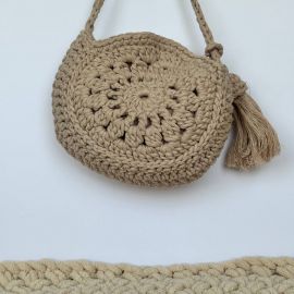 ԱվելացնելԱյս կլոր ձեռագործ պայուսակը համադրում է բնական ոճն ու նրբագեղ պարզությունը։ Հյուսված է 100% բամբակյա թելից՝ բեժ երանգով, որը կատարյալ է ինչպես առօրյա, այնպես էլ ամառային տեսքի համար։ Թելից պատրաստված բազկաթելը և դեկորատիվ թելային փունջը՝ տալիս են յուրահատուկ հմայք։