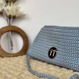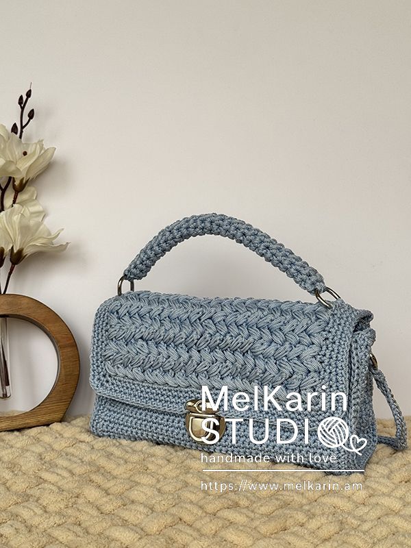 ԱվելացնելԱյս նուրբ ձեռագործ պայուսակը պատրաստված է բարձրորակ պոլիեսթերե թելով՝ հիասքանչ հյուսվածքով։ Հավասարակշռված երկնագույն երանգն ու օրիգինալ նախշերը այն դարձնում են իդեալական լրացում ցանկացած կերպարի։ Պինդ կառուցվածքը և դիմացկուն նյութերը ապահովում են պայուսակի ամրությունն ու գեղեցիկ ձևը։ Մետաղական ամրակն ու հարմար բռնակը ավելացնում են հարմարավետությունն ու ոճը։