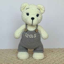 ԱվելացնելՍա փափուկ և սիրալիր արջուկ է, որը կուրախացնի և՛ երեխային, և՛ մեծահասակին։ Պատրաստված է բարձրորակ պլյուշե և բամբակյա թելերով։ Ձեռքով կարված և հարմարավետ գրկելու համար։ Փայտե կոճակներով մոխրագույն շալվարը խաղալիքին տալիս է հմայիչ ու դասական տեսք։ Հիանալի նվեր է տարեդարձի, ծննդյան, կամ պարզապես սիրով պատրաստված ուշադրության նշանի համար: