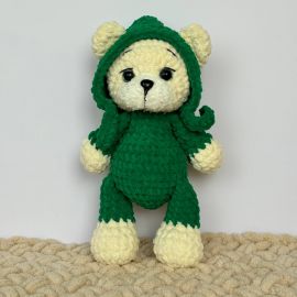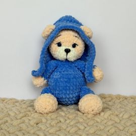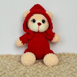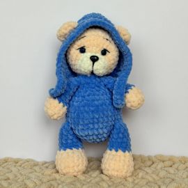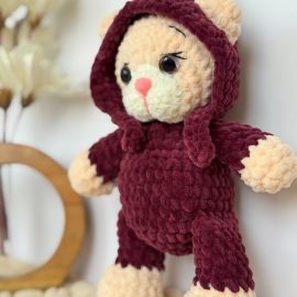 Очаровательные плюшевые мишки в капюшонах – это больше, чем просто игрушки. Это мягкие друзья, которые дарят уют, тепло и радость каждому ребёнку и взрослому. Каждый мишка связан вручную из гипоаллергенной велюровой пряжи, благодаря чему он невероятно приятен на