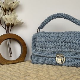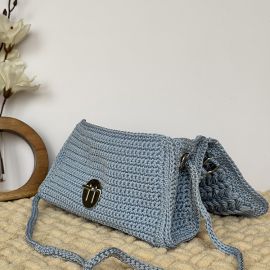 Эта элегантная сумка, связанная крючком из прочной полиэфирной нити, воплощает в себе стиль, комфорт и практичность. Благодаря утончённому узору плетения и сдержанному голубому цвету, она станет идеальным акцентом в повседневном или романтичном образе. Жесткая форма и