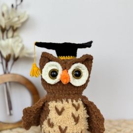 Очаровательная вязаная сова в выпускной шапочке — идеальный подарок для выпускников! Символ мудрости и знаний, этот милый персонаж обязательно поднимет настроение и станет трогательным напоминанием об особом дне. Выполнена вручную из мягкой пряжи, с любовью и