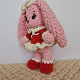 Розовая зайка в красном платье — это очаровательная ручная работа, которая подарит уют и тепло в ваш дом. Каждый стежок этой мягкой игрушки сделан с любовью и вниманием к деталям. Зайка в нежном красном платье станет прекрасным подарком для детей или милым украшением