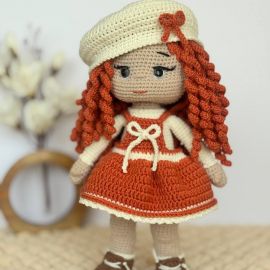 Հմայիչ ձեռագործ տիկնիկ հյուսված ամիգուրումի տեխնիկայով։ Տիկնիկը հագած է նարնջագույն զգեստ՝ սպիտակ զարդարանքով, նրբագեղ բերետով և կոշիկներով։ Նարնջագույն խոպոպները և արտահայտիչ աչքերը յուրահատուկ տեսք են հաղորդում նրան։ Հիանալի նվեր է երեխաների, տիկնիկների սիրահարների և հավաքորդների համար։ Կարող է նաև դառնալ տան գեղեցիկ դեկոր։