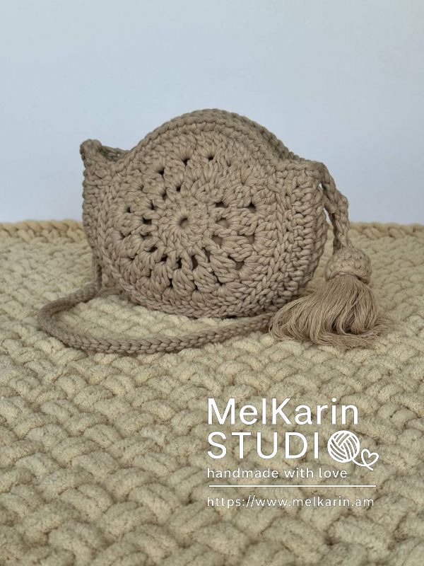 ԱվելացնելԱյս կլոր ձեռագործ պայուսակը համադրում է բնական ոճն ու նրբագեղ պարզությունը։ Հյուսված է 100% բամբակյա թելից՝ բեժ երանգով, որը կատարյալ է ինչպես առօրյա, այնպես էլ ամառային տեսքի համար։ Թելից պատրաստված բազկաթելը և դեկորատիվ թելային փունջը՝ տալիս են յուրահատուկ հմայք։