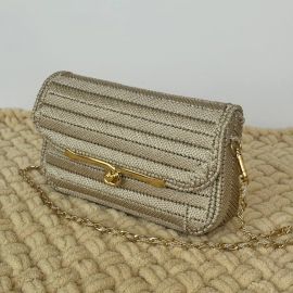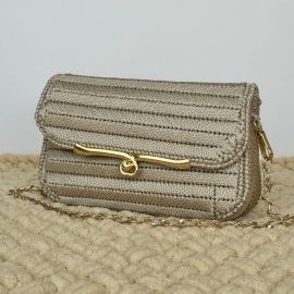 Կանացի հյուսված կլատչ «Շամպայն»՝ նրբագեղ և հարմարավետ։ Շիկափայլ թելը, խիտ հյուսվածքը և ոսկեգույն աքսեսուարները յուրահատուկ շքեղություն են հաղորդում պայուսակին։ Հարմար է երեկոյան միջոցառումների, հարսանեկան կամ այլ տոնական առիթների համար։ Կրում է ձեռքով կամ ուսին՝ շղթայաձև փոկի շնորհիվ։
