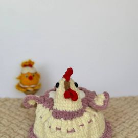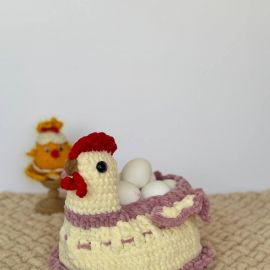Очаровательная вязаная курочка ручной работы — оригинальный элемент пасхального декора и практичная корзинка для яиц.