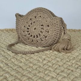 ДобавитьЭта круглая вязаная сумочка ручной работы — воплощение натурального стиля и утончённой простоты. Изготовлена из прочной хлопковой пряжи в бежевом оттенке, она гармонично впишется как в повседневный, так и в пляжный образ. Удобный плетёный ремешок и декоративная кисточка придают изделию особый шарм.